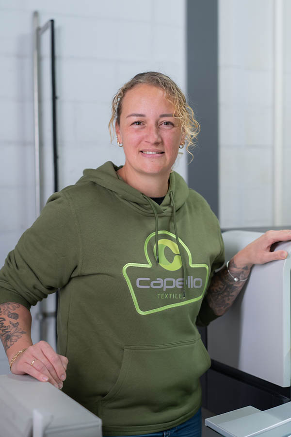 Ramona is de drijvende kracht achter onze productie. Zij is verantwoordelijk voor de volledige planning en zorgt dat elke order op tijd gereed is. Met haar expertise bedient zij onze geavanceerde DTF-machines en bewaakt zij de kwaliteit van elk product dat onze werkplaats verlaat.