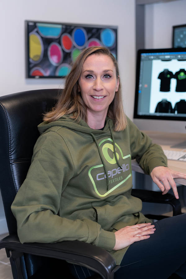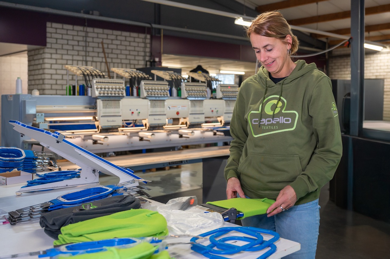 Bij Janneke is uw textiel in vertrouwde handen. Zij zorgt ervoor dat de transfers feilloos worden aangebracht. Voor Janneke is 'goed' niet goed genoeg; zij rust pas als elk logo kaarsrecht en op de exacte positie staat.